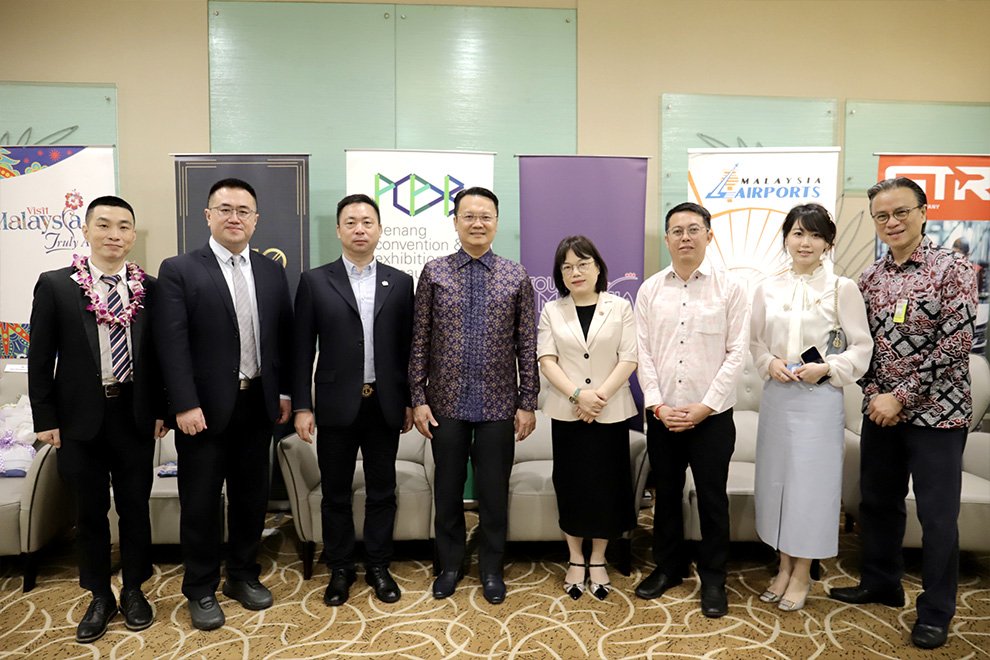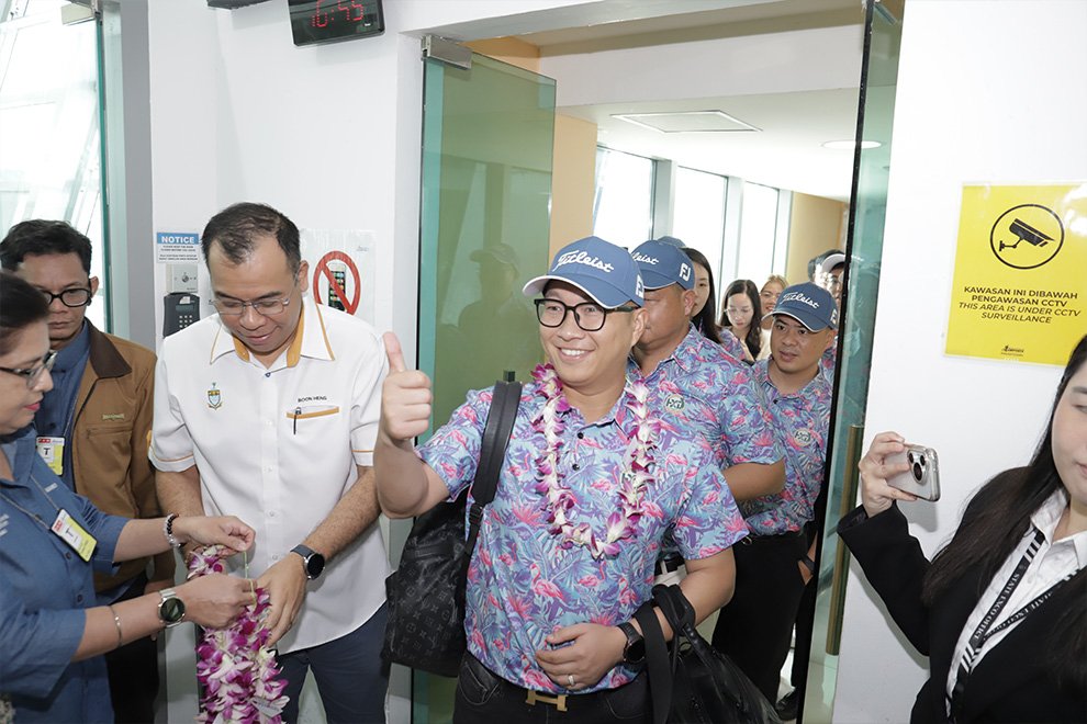 Upon arrival in Penang, the aircraft was honoured with a ceremonial water salute to commemorate the inaugural landing. Ambassador H.E. Shaharuddin Onn, along with all passengers and flight crew, was warmly welcomed by representatives from relevant Malaysian government departments, the Malaysia Tourism Promotion Board (Tourism Malaysia),Penang Convention & Exhibition Bureau(PCEB), Penang International Airport, and various sectors.All passengers were presented with traditional garlands and gifted welcome souvenir bags as a gesture of hospitality.